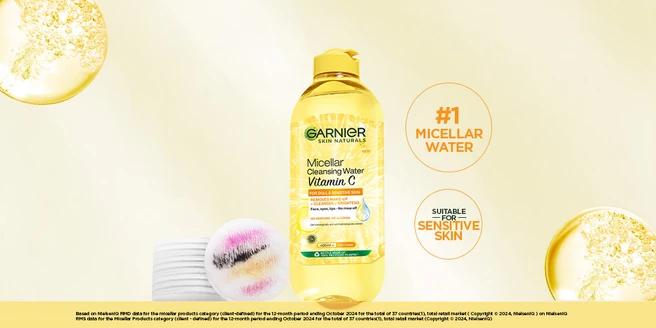 میسلار واتر گارنیر زرد: پاکسازی عمیق و درخشان کردن پوست با ویتامین C
